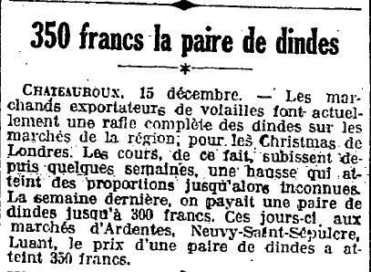 Jusqu'à 350 francs la paire de dindes, soit 347,45 euros.