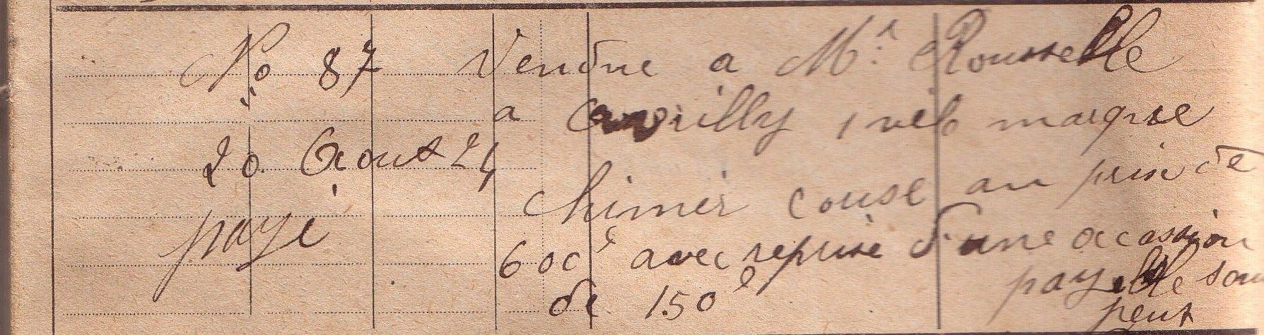 Le 18 juillet fut vendu à Monsieur Derouet Maurice, boulanger à Saint-Front, un vélo de marque "Chimère" demi-course sous le numéro de série 13 80 81 au prix de 539 francs, soit 468,15 euros.