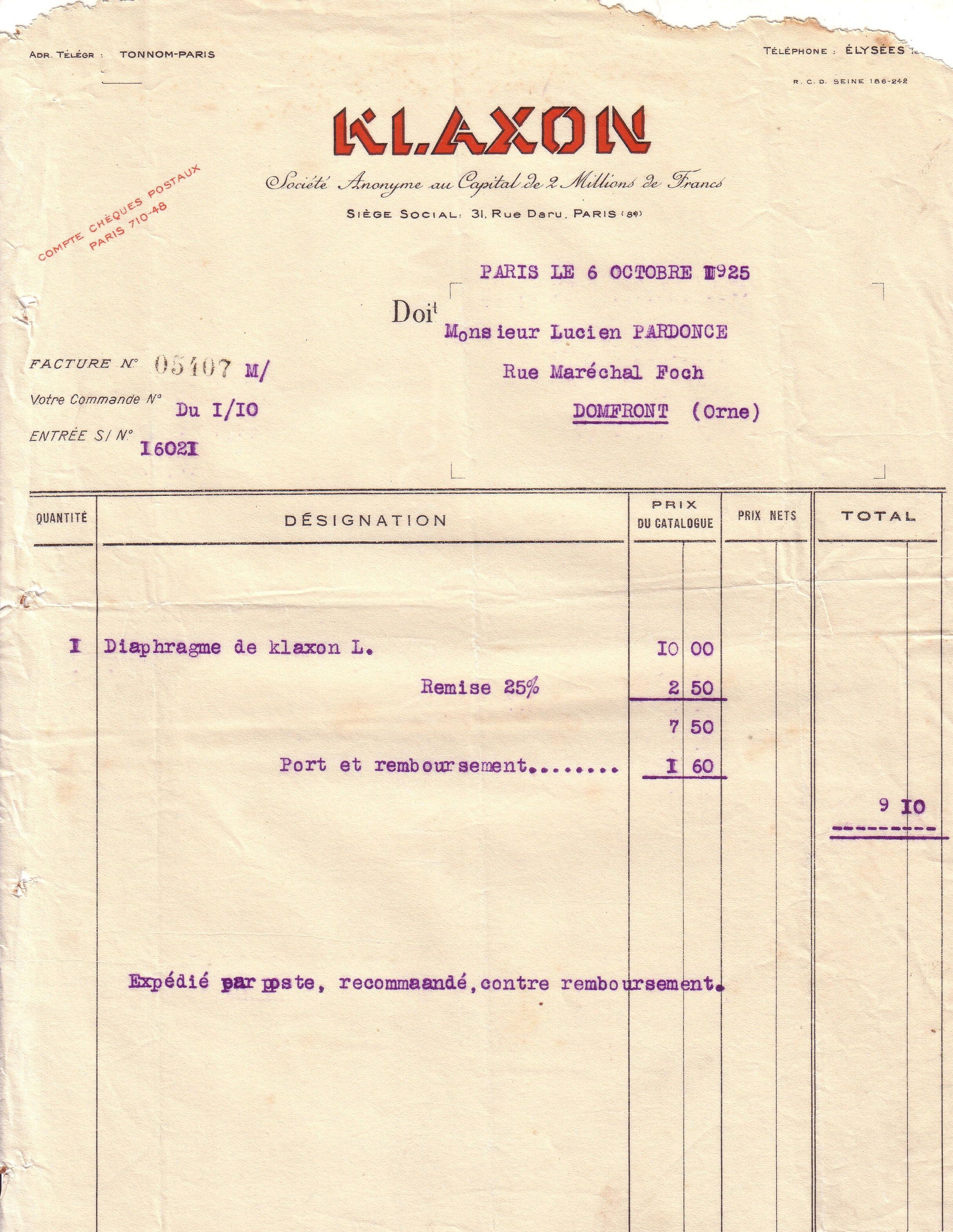 Dans "La Revue du Touring Club" de décembre 1921 la société Klaxon Co Ltd fait savoir que le mot klaxon est sa propriété et qu'il est mal venu de l'employer pour désigner un avertisseur sonore!!!