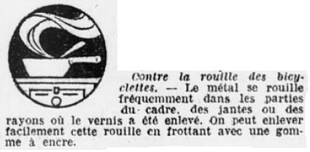 En 1906 des auteurs proposaient de tremper les pièces de vélo rouillées dans un mélange de sel de cuisine et de jus de citron.
